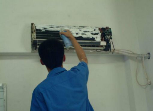 | 延川空调维修师傅给延川用户上门维修清洗空调。 |